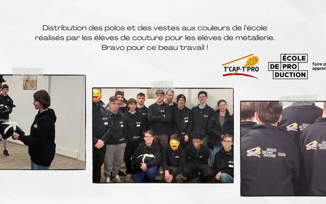 Nos élèves de couture ont fabriqué de A à Z, 11 vestes de métalliers (avec du tissu antifeu) et 36 polos noirs coton manches longues, pour les donner à nos élèves de métallerie: beau moment de partage.